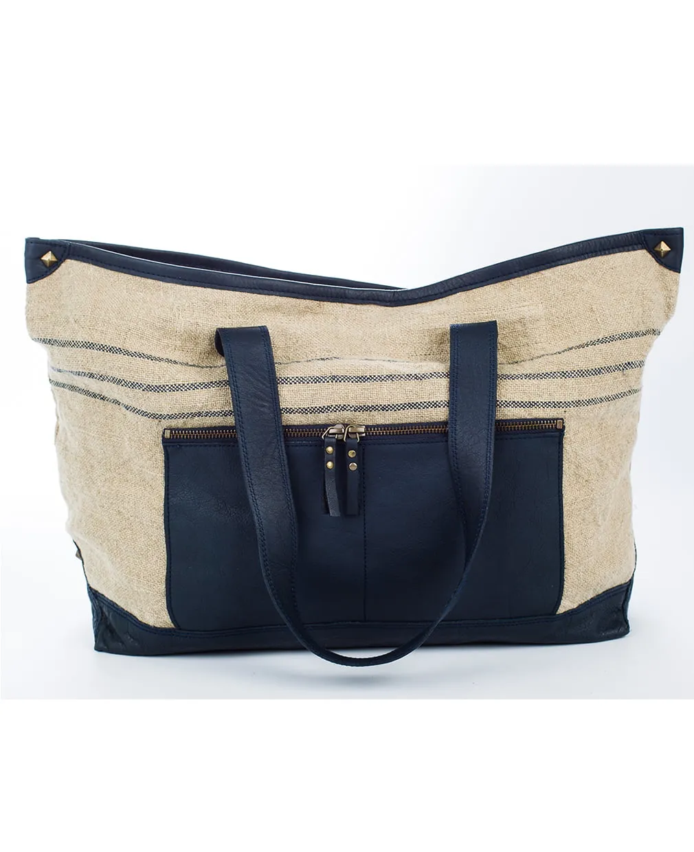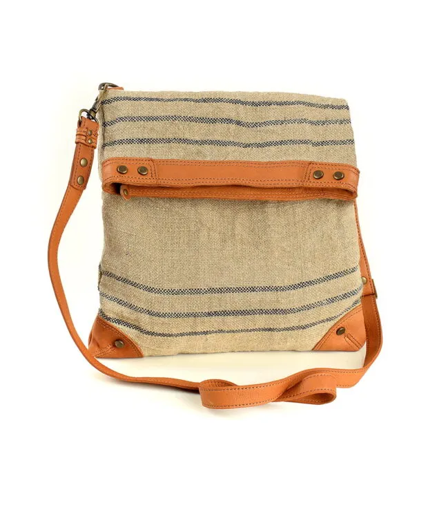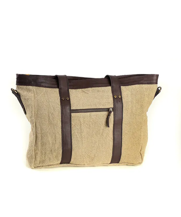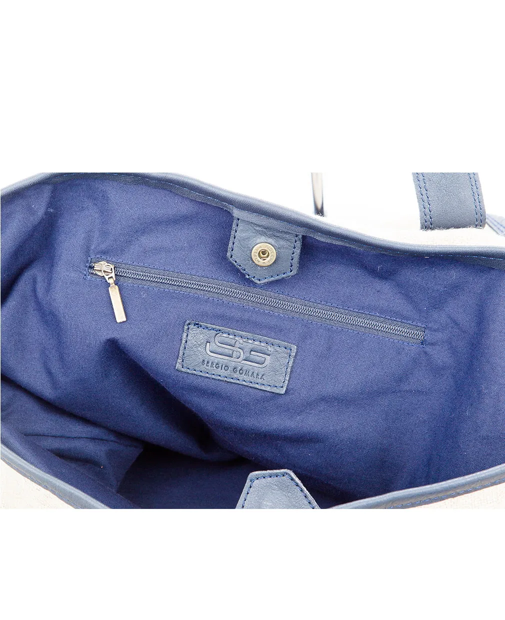Bolso de Lino y piel vacuna con cierre broche. Asas piel vacuna. Gran capacidad.