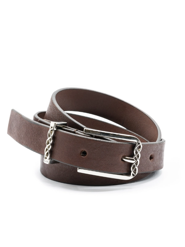 Cinturón mujer de piel 25mm hebilla plateada brillante con pasador.