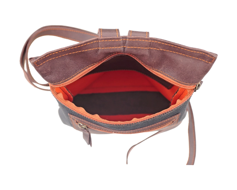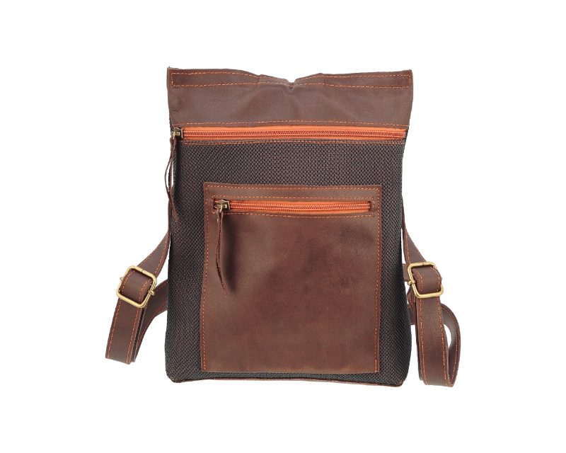 Mochila mediana textil-piel con bolsillo exterior con cremallera.En el interior dispone de un bolsillo para el móvil confeccionado en piel.